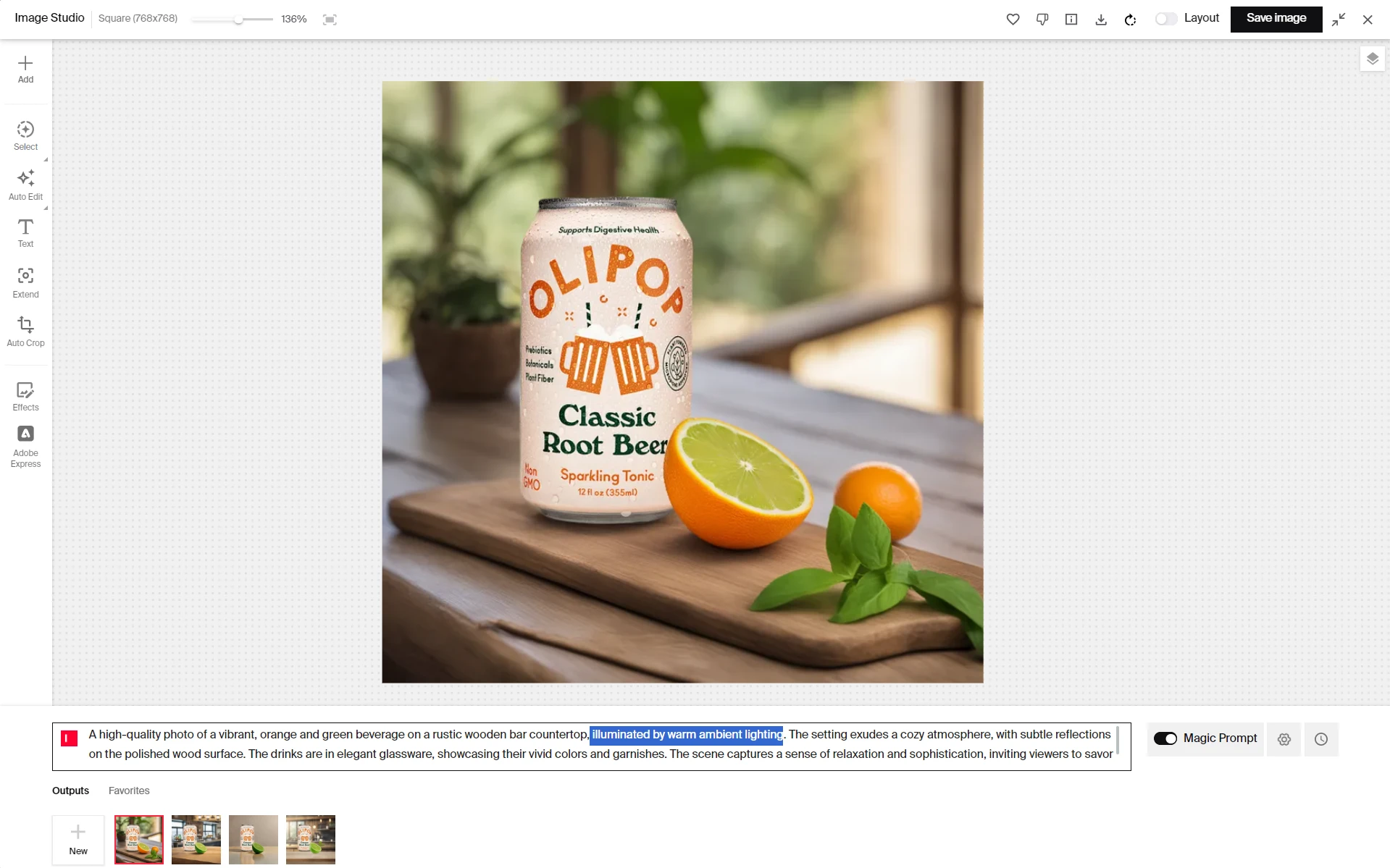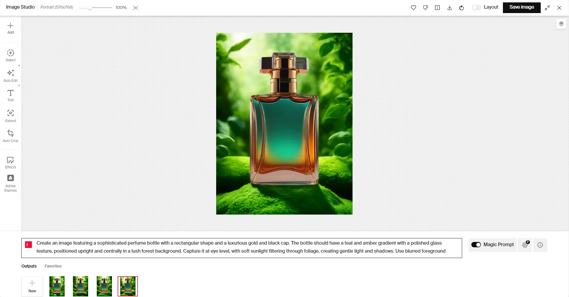 You can use the Visual Inspiration Studio on Typeface or add what you imagine the product shot to be like on Typeface Image Studio and let “Magic Prompt” suggest the best prompt that you can work with. Then, make your little changes and regenerate to personalize your product photos as you like.