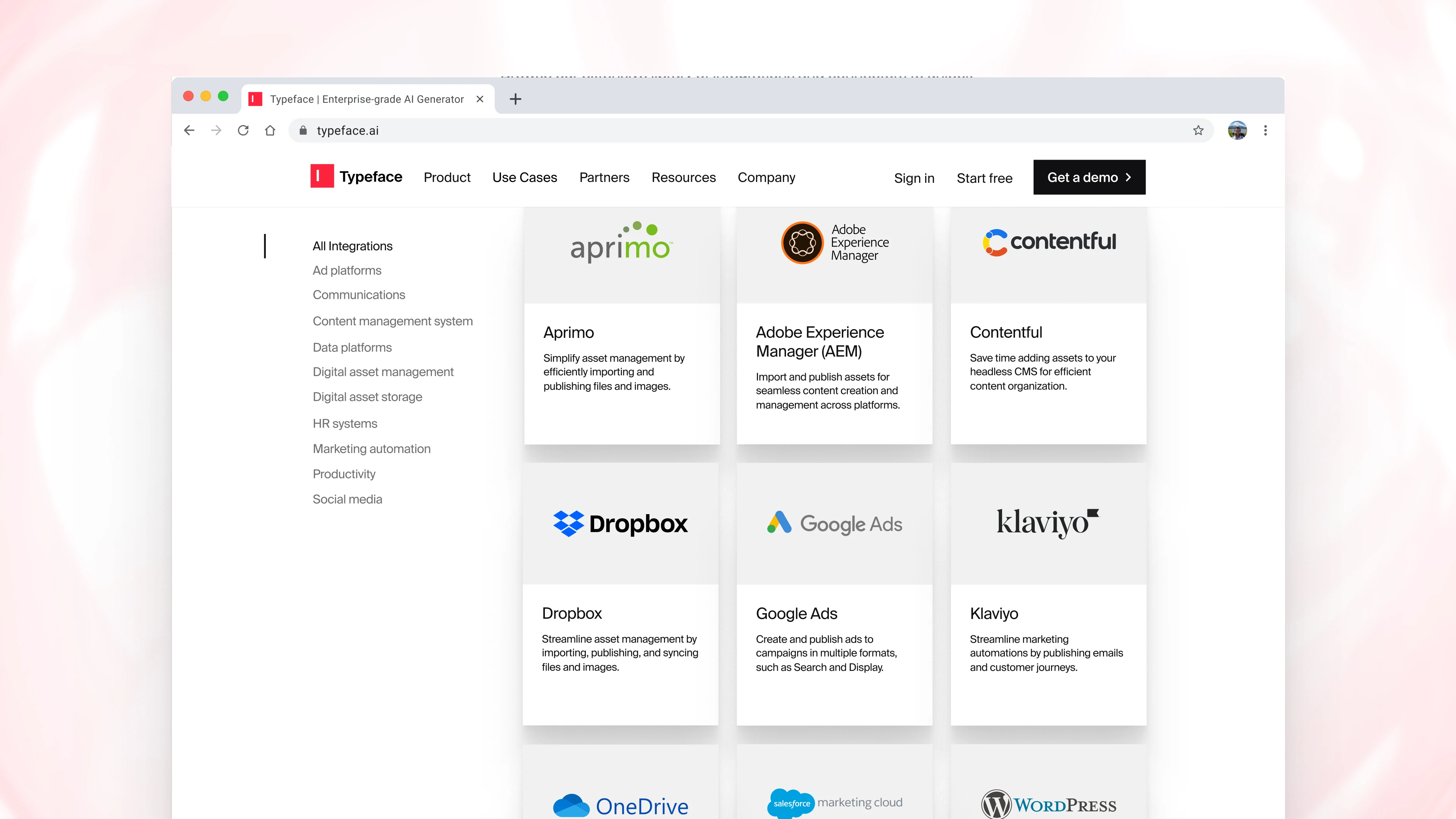 End-to-end connectivity: Effective personalized content creation hinges on seamlessly accessing your existing assets and effortlessly distributing AI–generated content across your systems. Today, we’ve launched a whole new ecosystem of connectors within Typeface Connect to integrate into more of your existing systems, such as digital asset management, customer data platforms, content management, and publishing platforms, and more. For instance, our Adobe Experience Manager connector enables direct asset transfer while our Salesforce Data Cloud integration enhances personalization capabilities using audience and lead data. See all connectors available on our website.