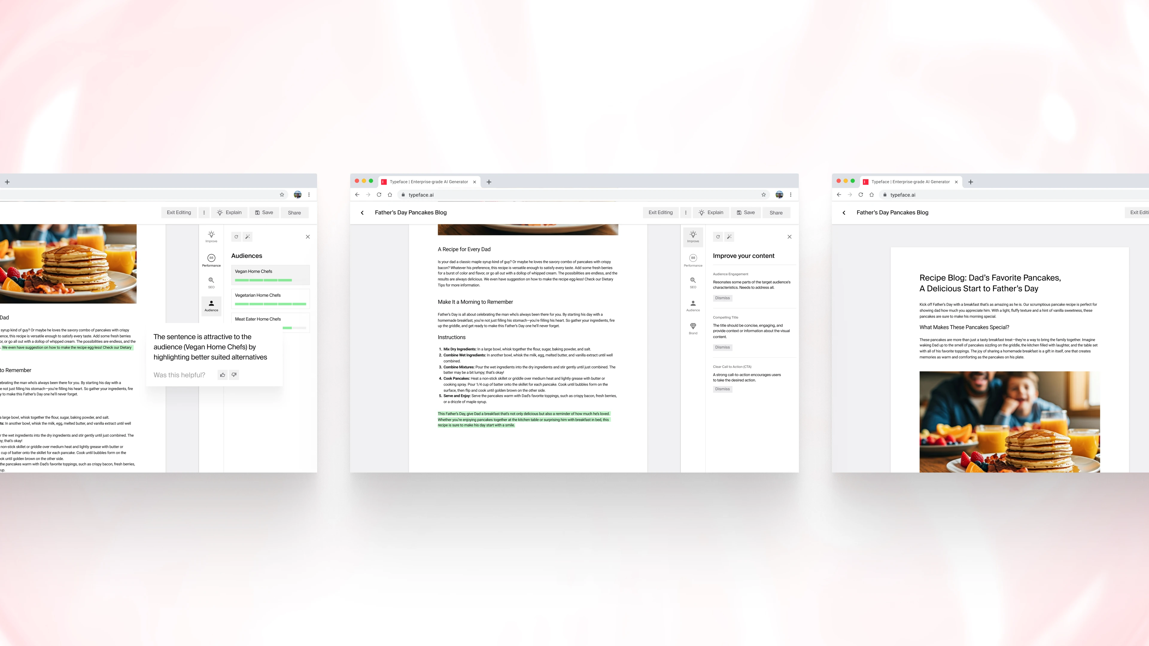 We're thrilled to welcome Treat and Narrato to the Typeface family, propelling our vision of end-to-end content lifecycle transformation. Building on our foundation of multimodal AI workflows, these acquisitions’ top-tier AI technology and talent further enrich our visual and textual capabilities. Treat AI's cutting-edge image harmonization technology ensures best-in-class quality and brand fidelity in any visual context.