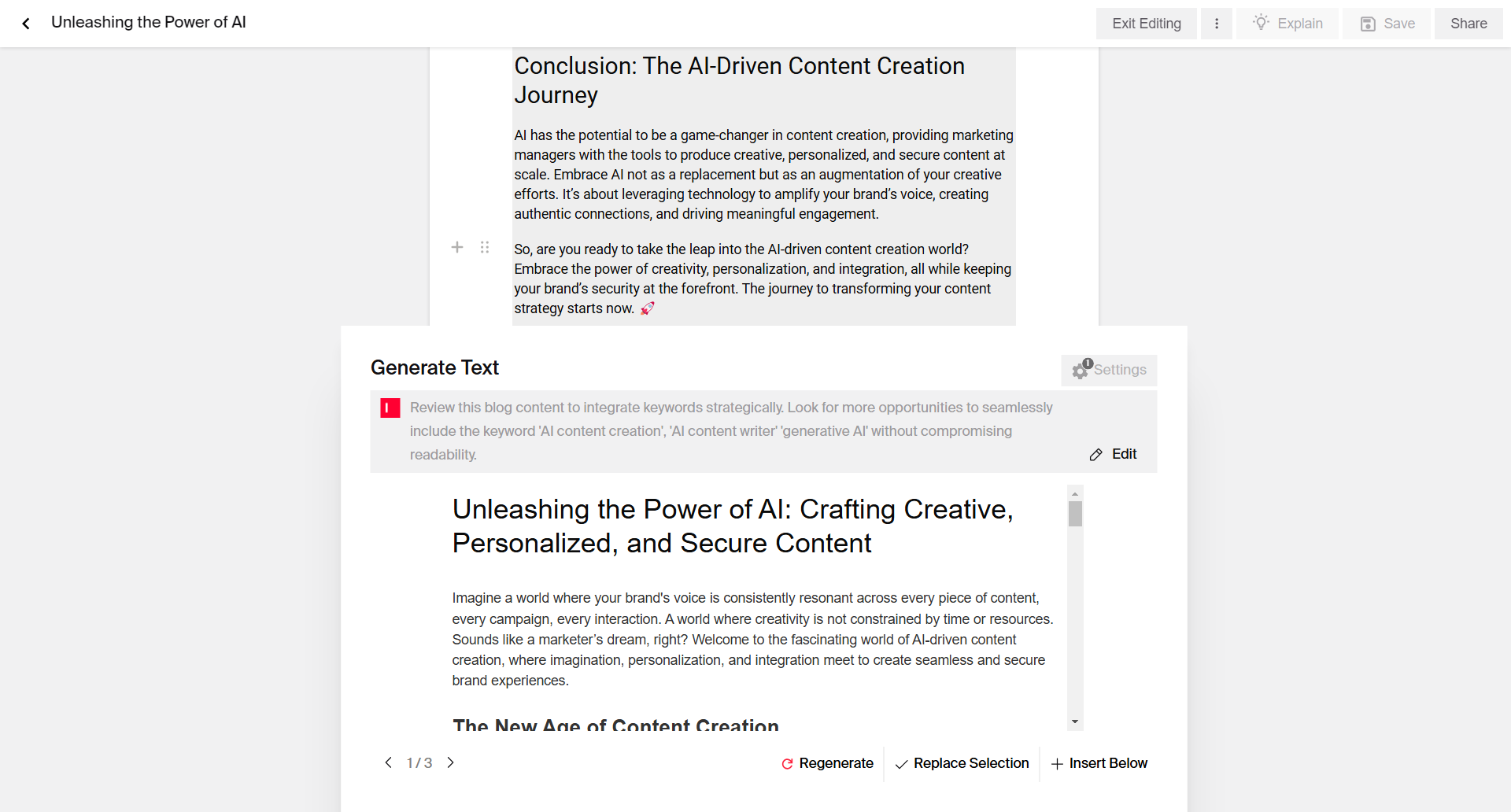 The quicker you can create and publish content, the more agile you are in responding to trends and keeping your content pipeline on track. With AI handling the groundwork, you can focus on the parts of writing that truly matter — adding your unique insights, refining your message, and delivering something valuable to your readers.