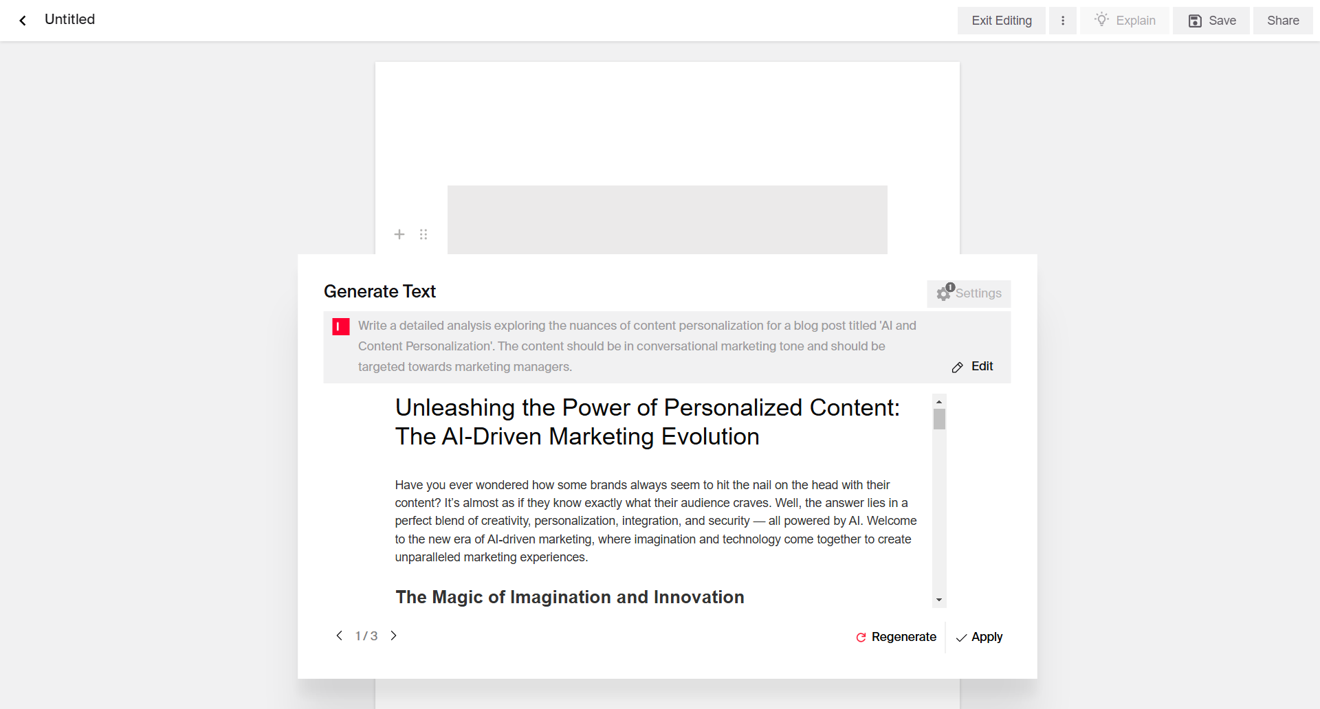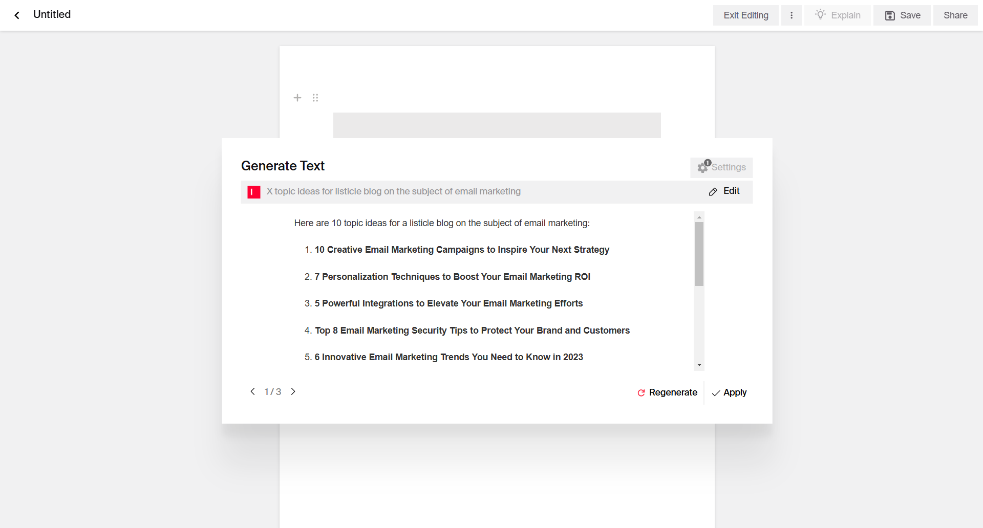 Add parameters: You might want to add certain parameters to better guide the AI in creating content. Specify word count, paragraph count, or reading time to improve the clarity, structure, and engagement level of the AI-generated content