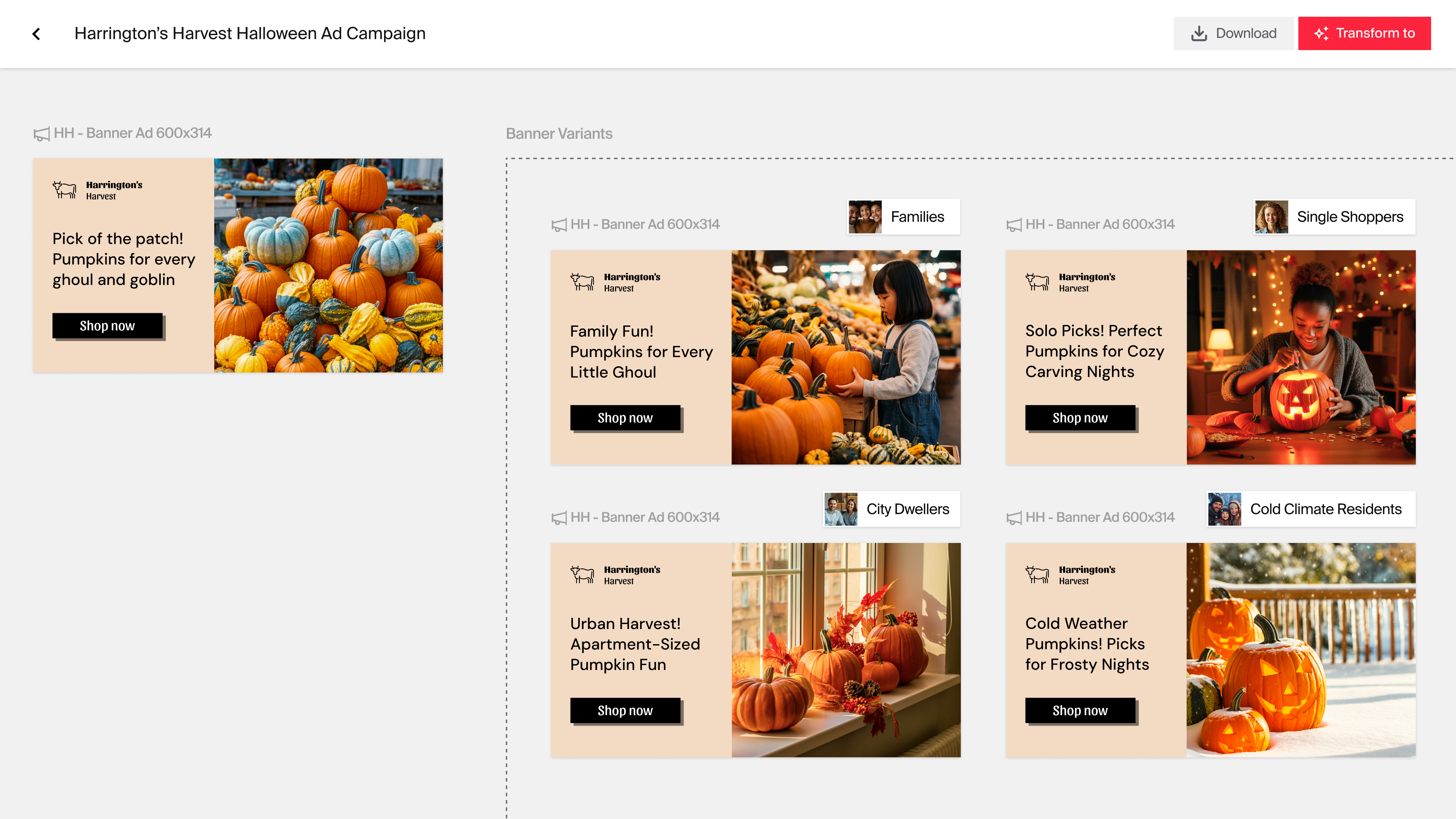 After choosing a creative direction, our content transformation engine converts these inspirations into brand-personalized images and designs.