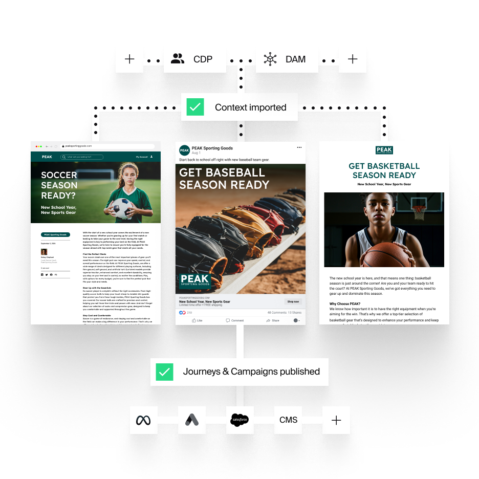 Typeface Agents can seamlessly gather data from your asset libraries, customer data platforms, marketing automation platforms, and more.