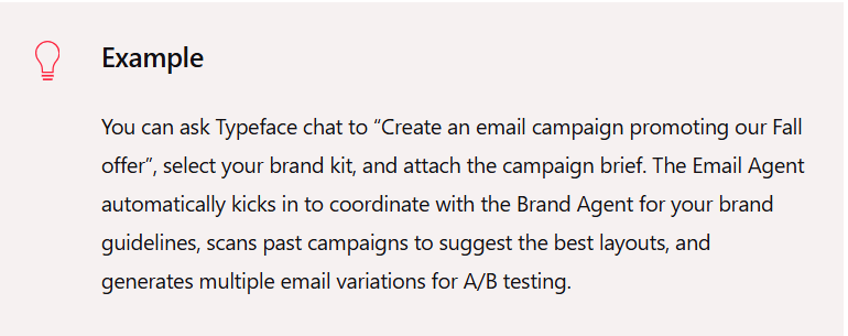 Typeface Arc Agents act as your AI teammates that have deep understanding of your brand and campaign requirements. Unlike single-purpose AI tools, Arc Agents can interpret ambiguous instructions, orchestrate across domains, and self-correct along the way.