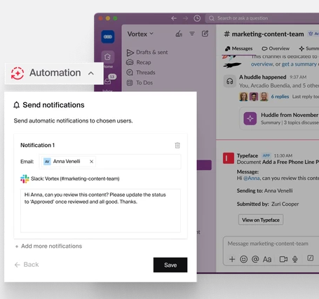 In Typeface, you can build robust approval workflows by mirroring your existing video review process or improving them with additional steps as needed. Assign tasks to the right team members, stay on track with Slack or email notifications, and let legal reviewers add comments or suggest edits directly in the work canvas. A complete edit history shows who approved what and when, ensuring transparency, accountability, and compliance.
