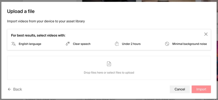 Select the video you want to repurpose. You can upload a video file or select one within your projects in the Assets library.
