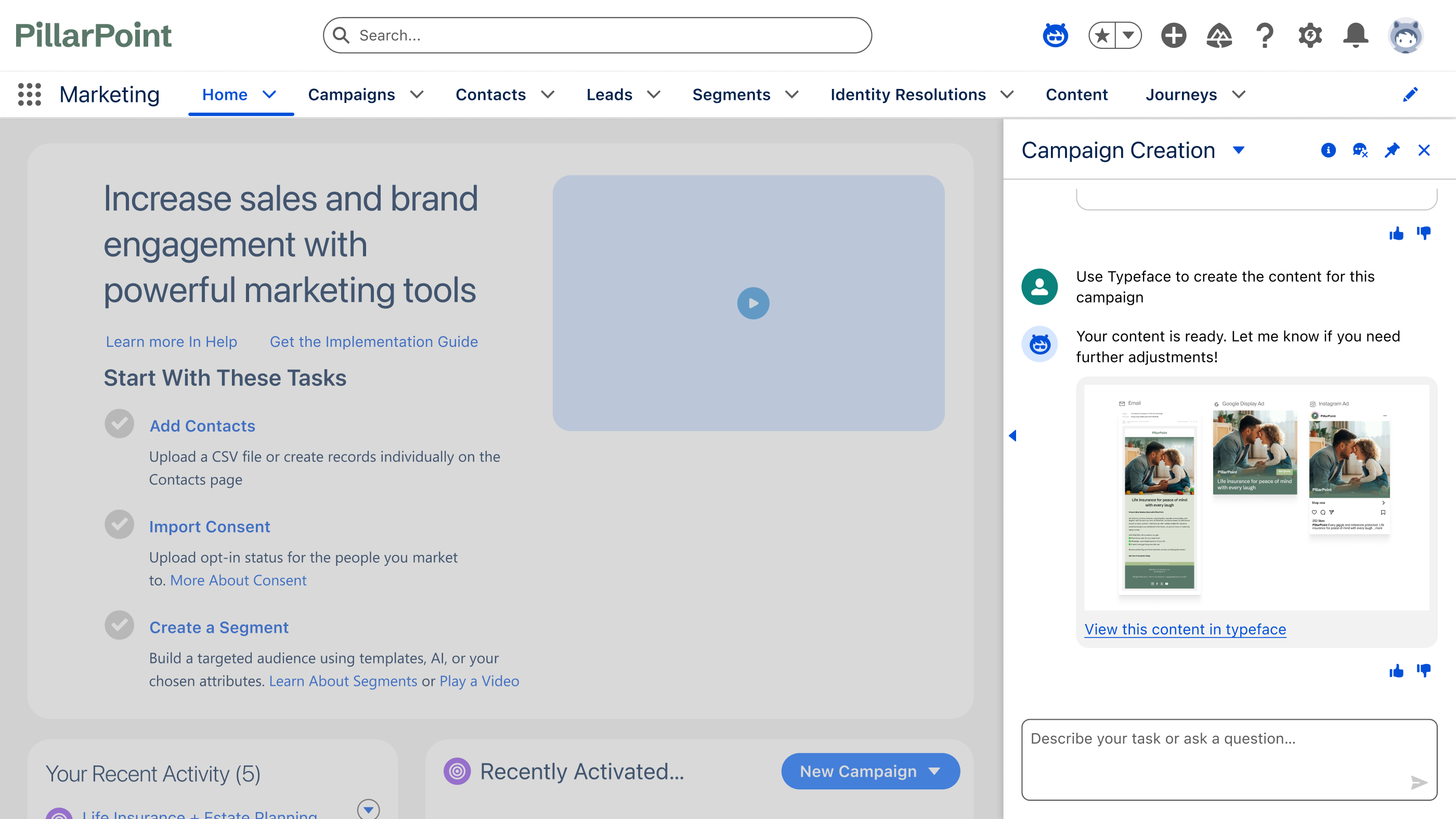 Stay on-brand: Every email, ad, and landing page is validated by Typeface against brand guidelines and powered by approved assets, ensuring consistent, compliant content at scale.